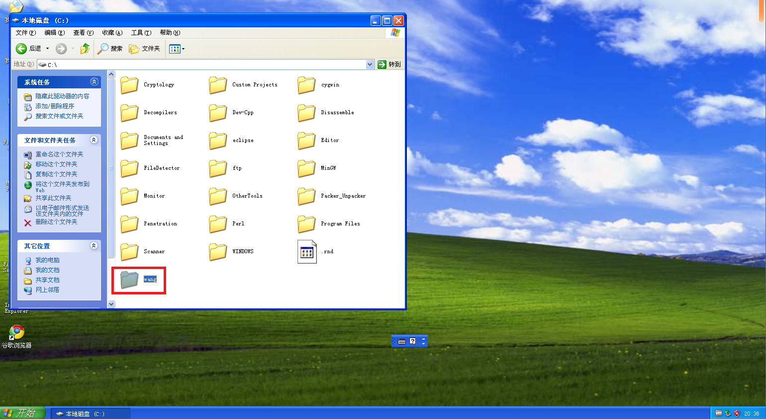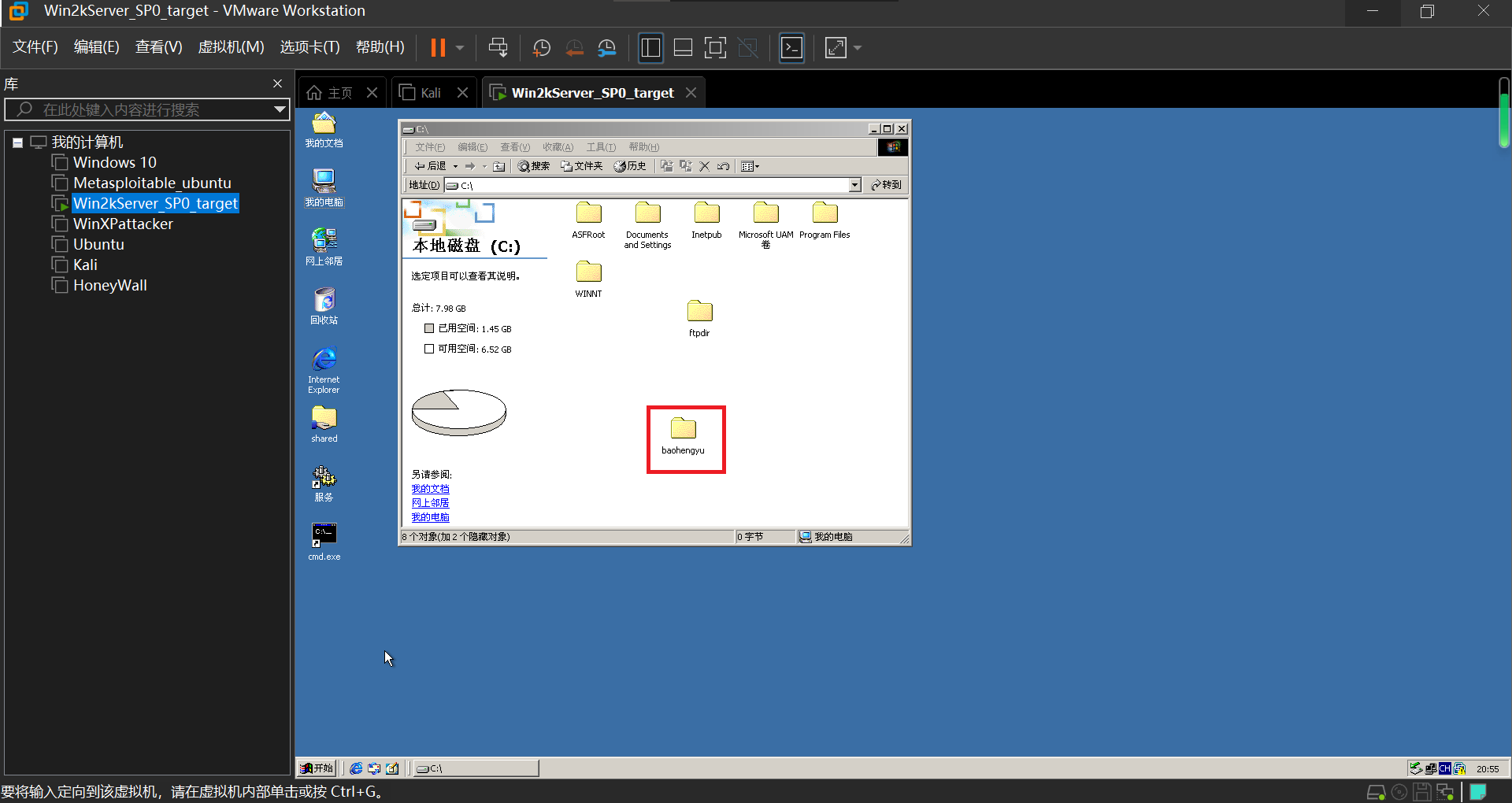 再是防御实践,让对方攻击我的主机。发现自己的主机中多了对方创建的文件夹baohengyu