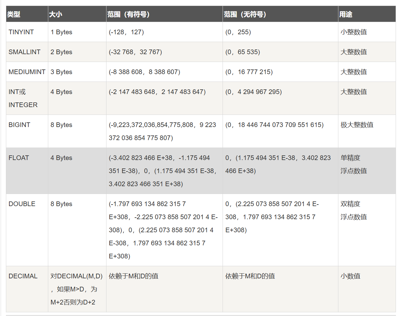 这里主要以MySQL为例进行讲解,MySQL 支持多种类型,大致可以分为三类:数值、日期/时间和字符串(字符)类型。
