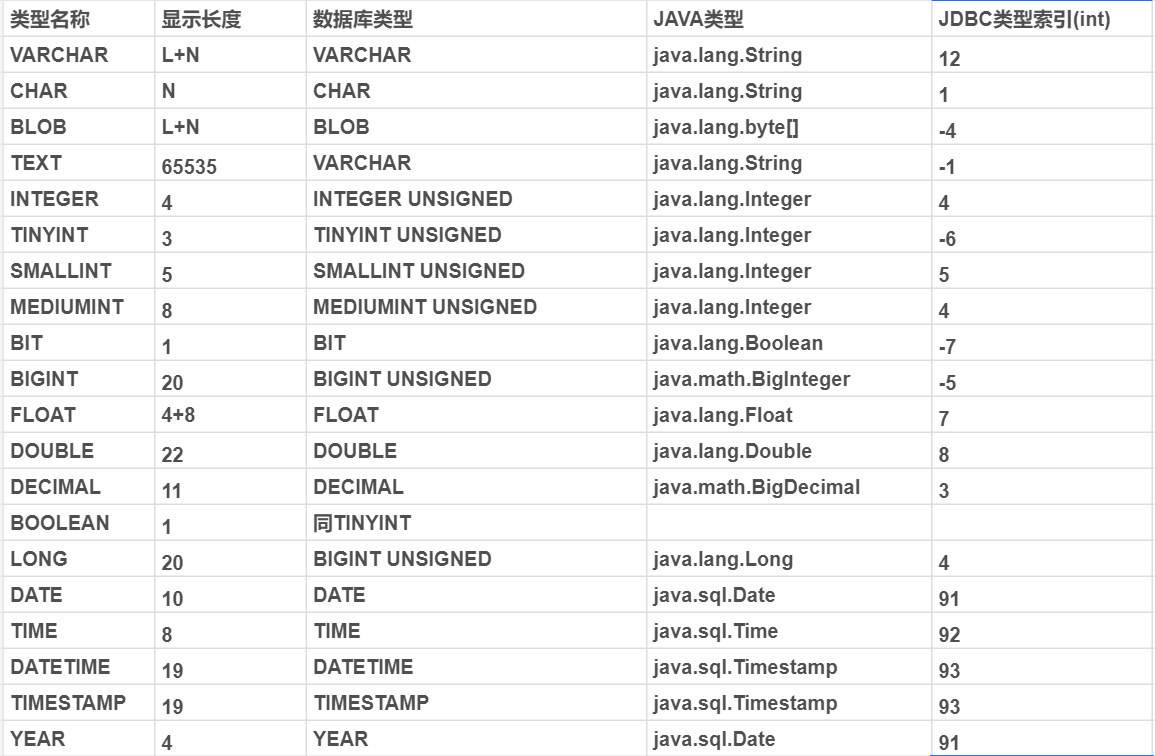 上面罗列了前后端以及数据库支持的数据类型,下面整理了一些数据的对应关系: