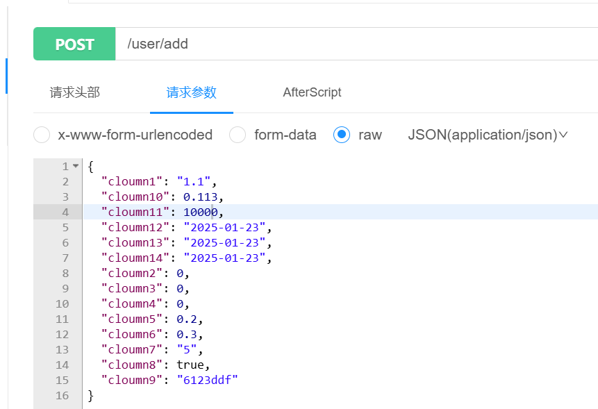 准备完毕之后我们开始进行debug实验,接口传参如下: