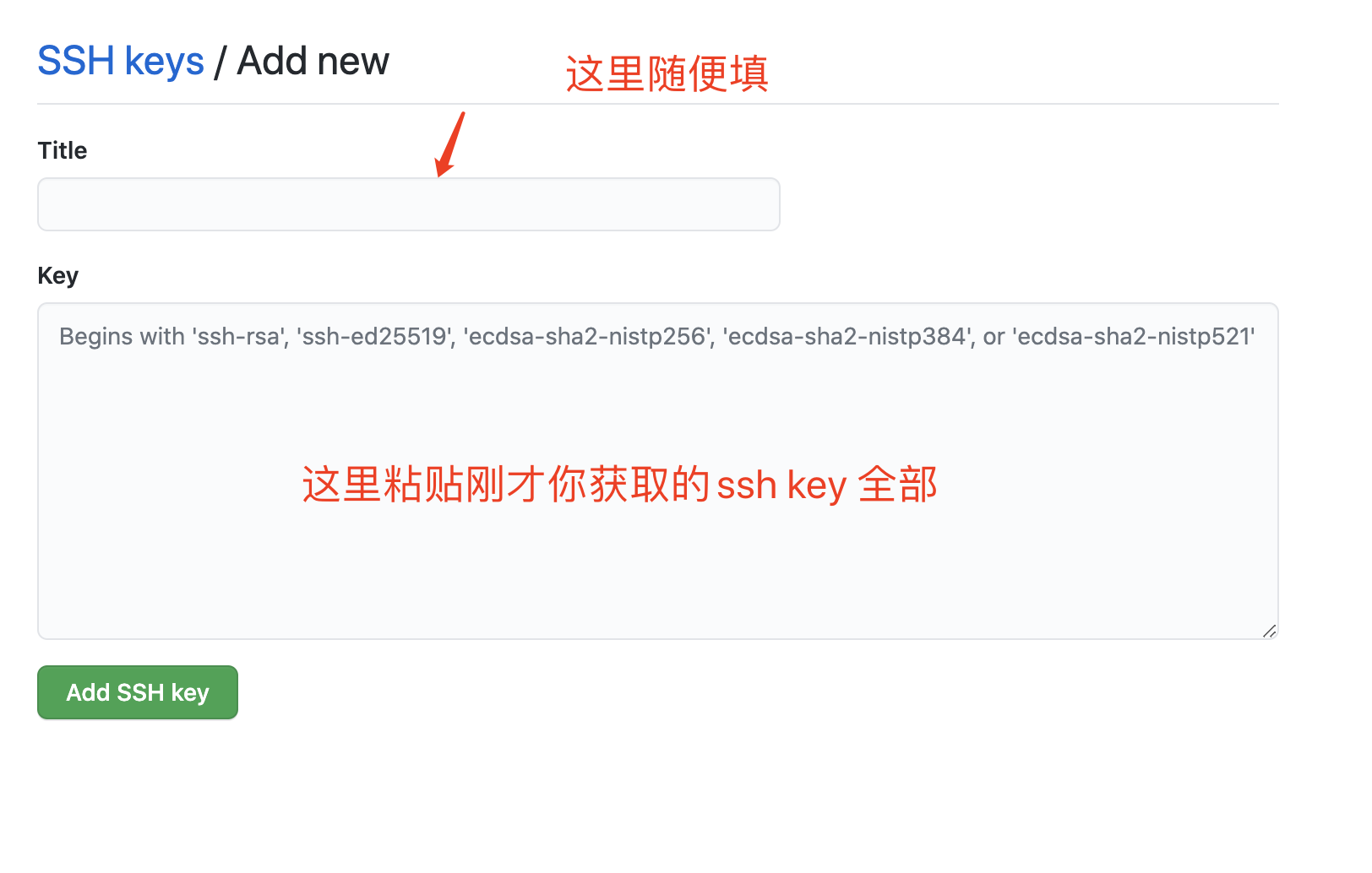 点击add ssh key 后