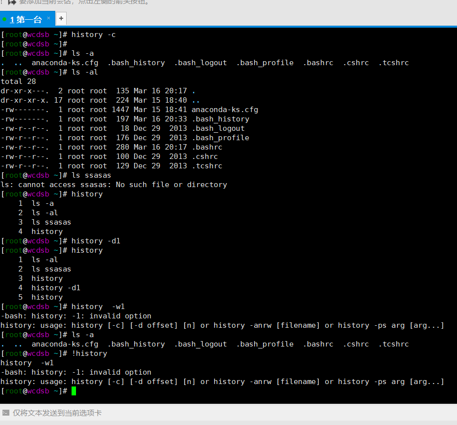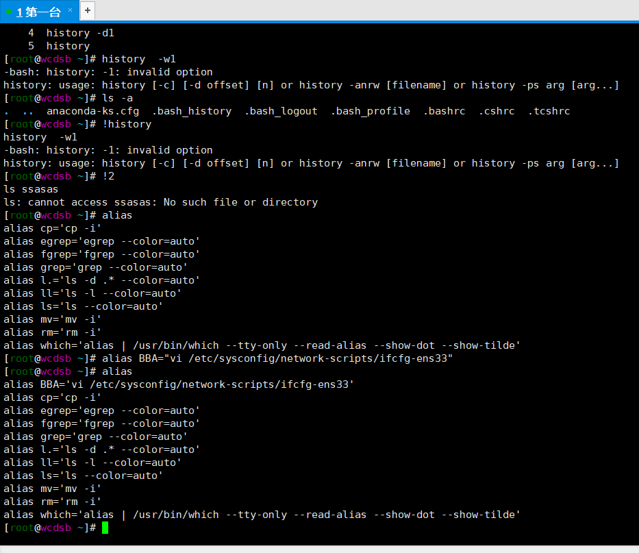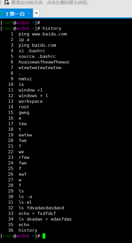 - ! + 数字(注意英文输入):执行历史命令中编号所在命令内容