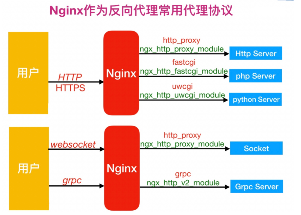 | http、websocket、HTTPS | ngx_http_proxy_module |