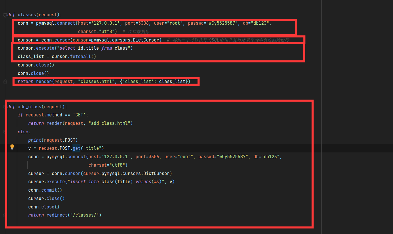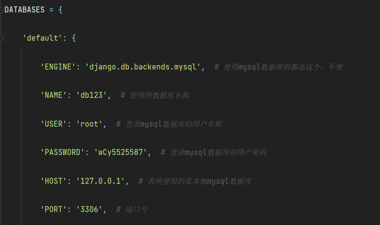 db = pymysql.connect(host='localhost',user='root',db='huangwei', password='123456',port=3306,charset='utf8') |