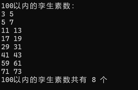 printf("100以内的孪生素数共有 %d 个\n", count);