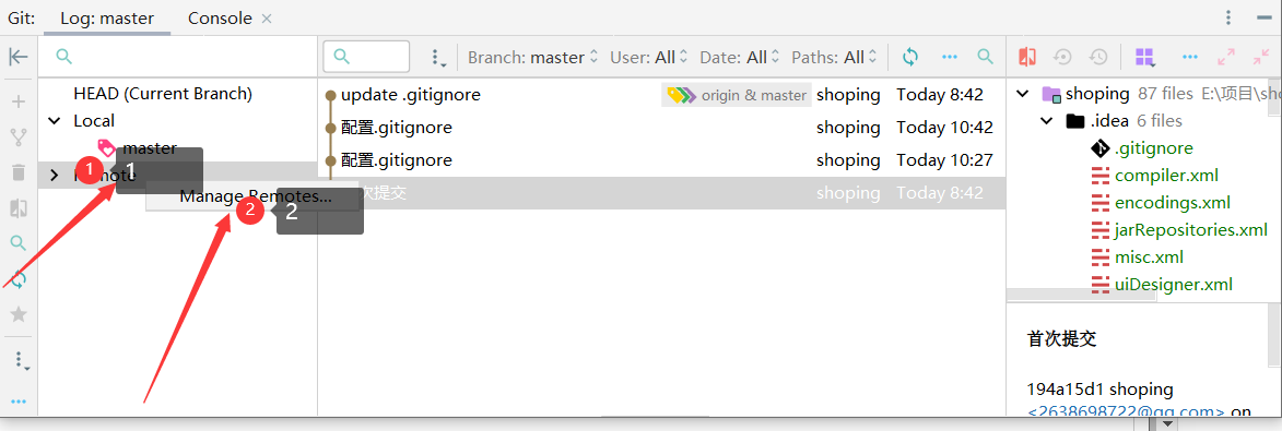 第一步:在idea中按下AlT+9,右击Remote 再点击Manage Remotes