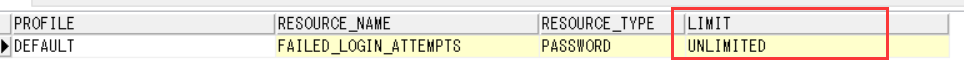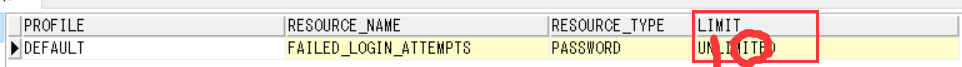 SQL语句为:select * from dba_profiles where profile='DEFAULT' and resource_name='FAILED_LOGIN_ATTEMPTS';