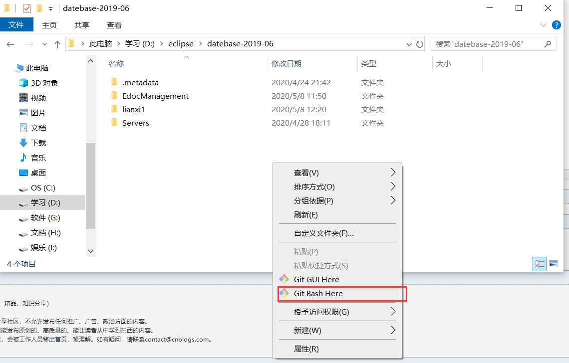 创建成功后,在你本地的硬盘中创建一个文件夹名字要是英文的以免发生错误,然后在空白处单击鼠标右键, 如下图