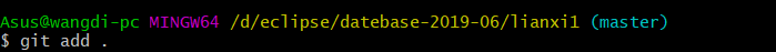 然后在输入命令git add . (注意点不要丢了) 此命令是把文件夹中修改过的文件或新增的文件添加进来