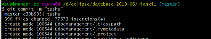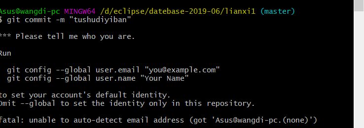 然后是提交+说明:git commit -m "说明信息",首次操作会让你配置git的全局name和email,意思告诉系统你是谁,