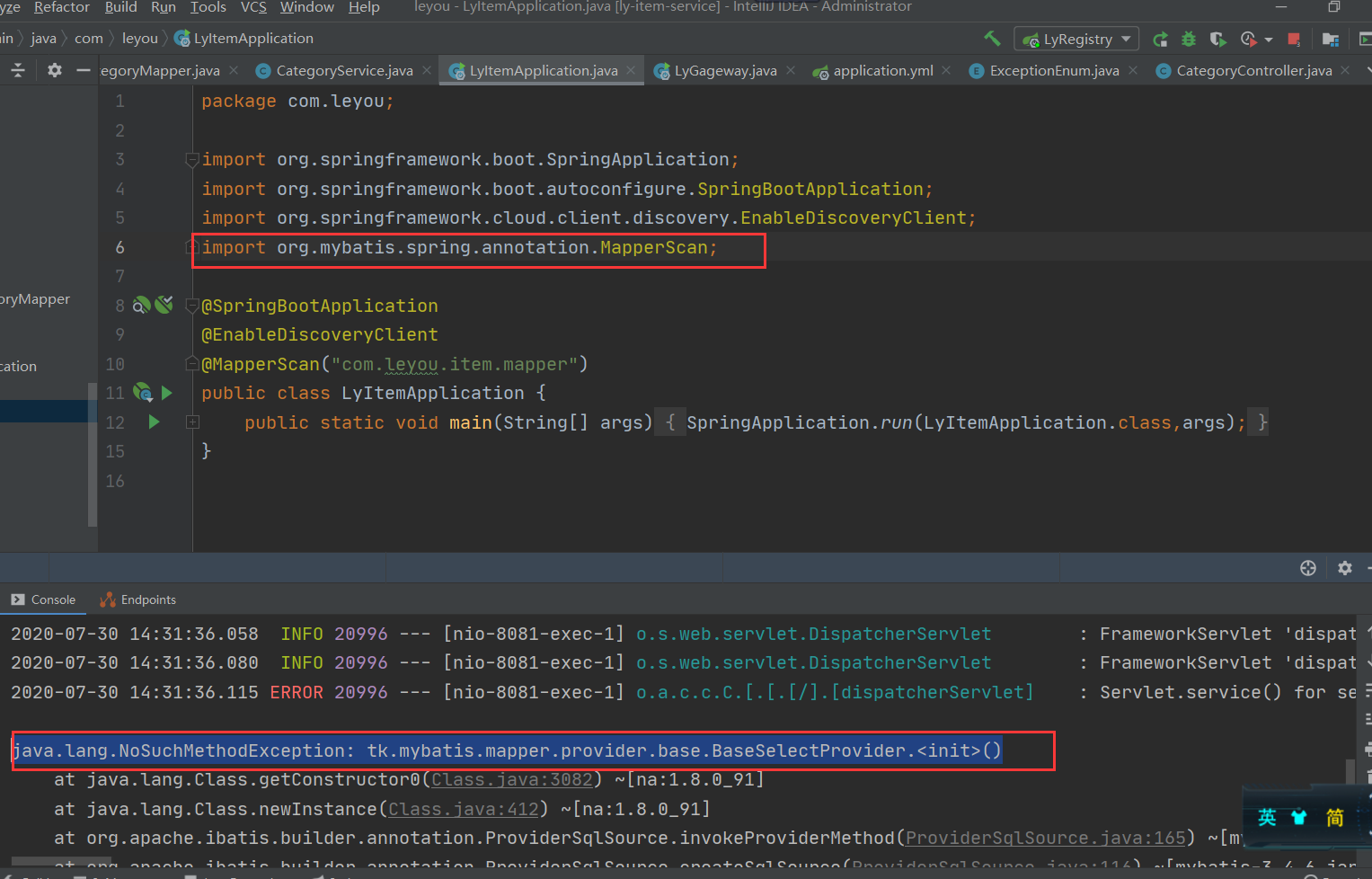 报错:java.lang.NoSuchMethodException: tk.mybatis.mapper.provider.base.BaseSelectProvider.<init>()