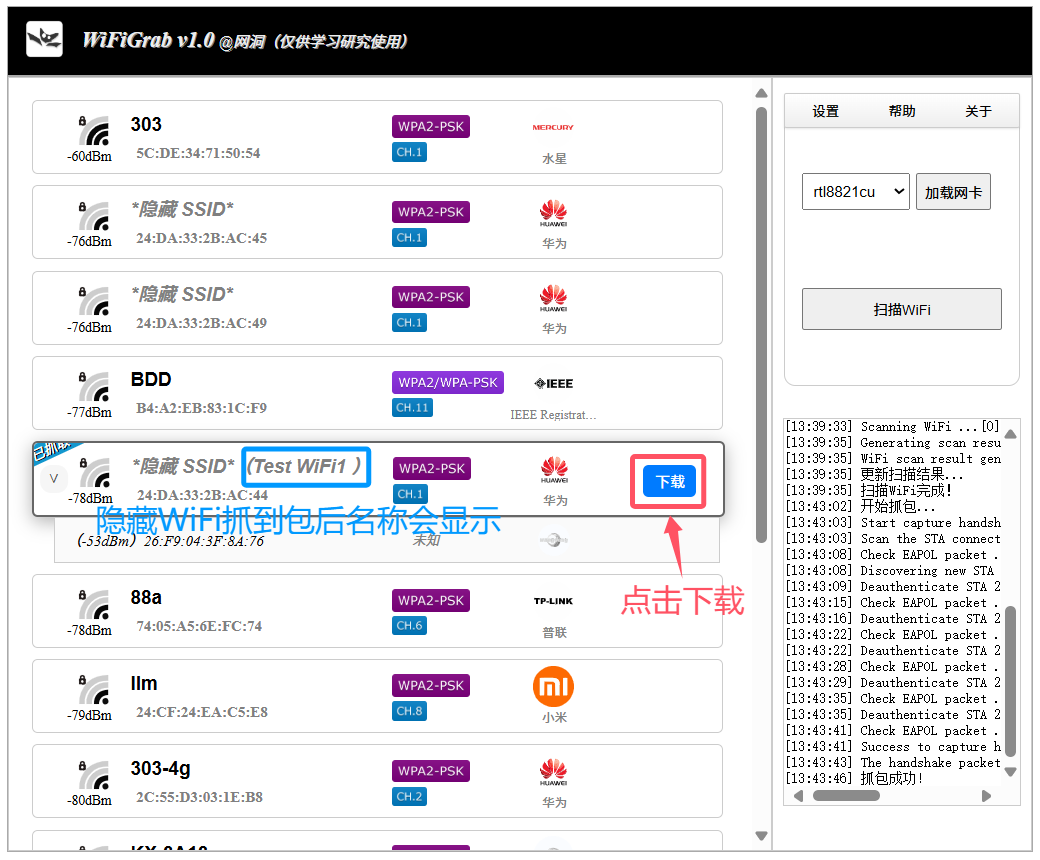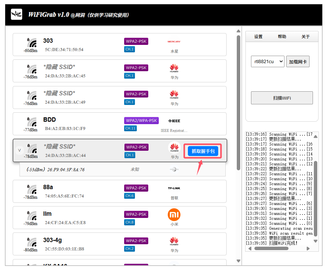 WiFiGrab教程1:一键抓包隐藏WiFi并获取SSID