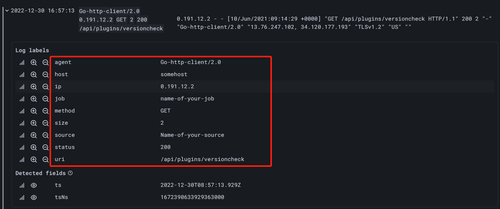 0.191.12.2 - - [10/Jun/2021:09:14:29 +0000] "GET /api/plugins/versioncheck HTTP/1.1" 200 2 "-" "Go-http-client/2.0" "13.76.247.102, 34.120.177.193" "TLSv1.2" "US" ""