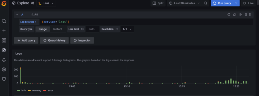 至此已经完成了安装操作,接下来可以在grafana中配置数据源,使用简单的logql可以查询到日志信息