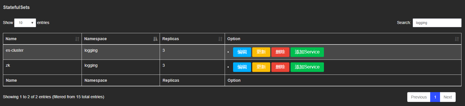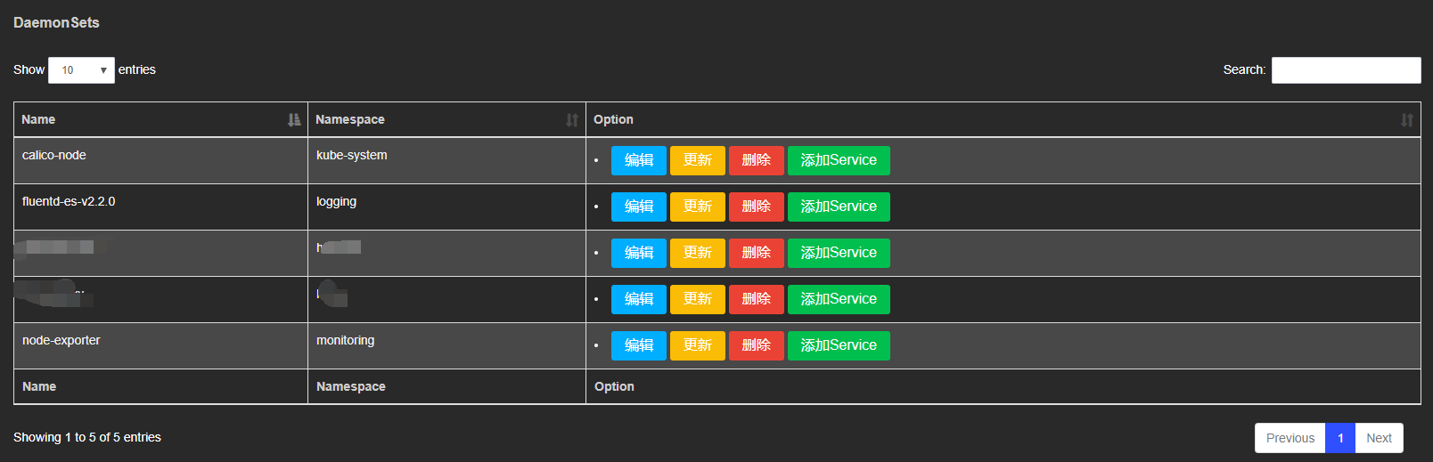 Deployment StatefulSet DaemonSet列表