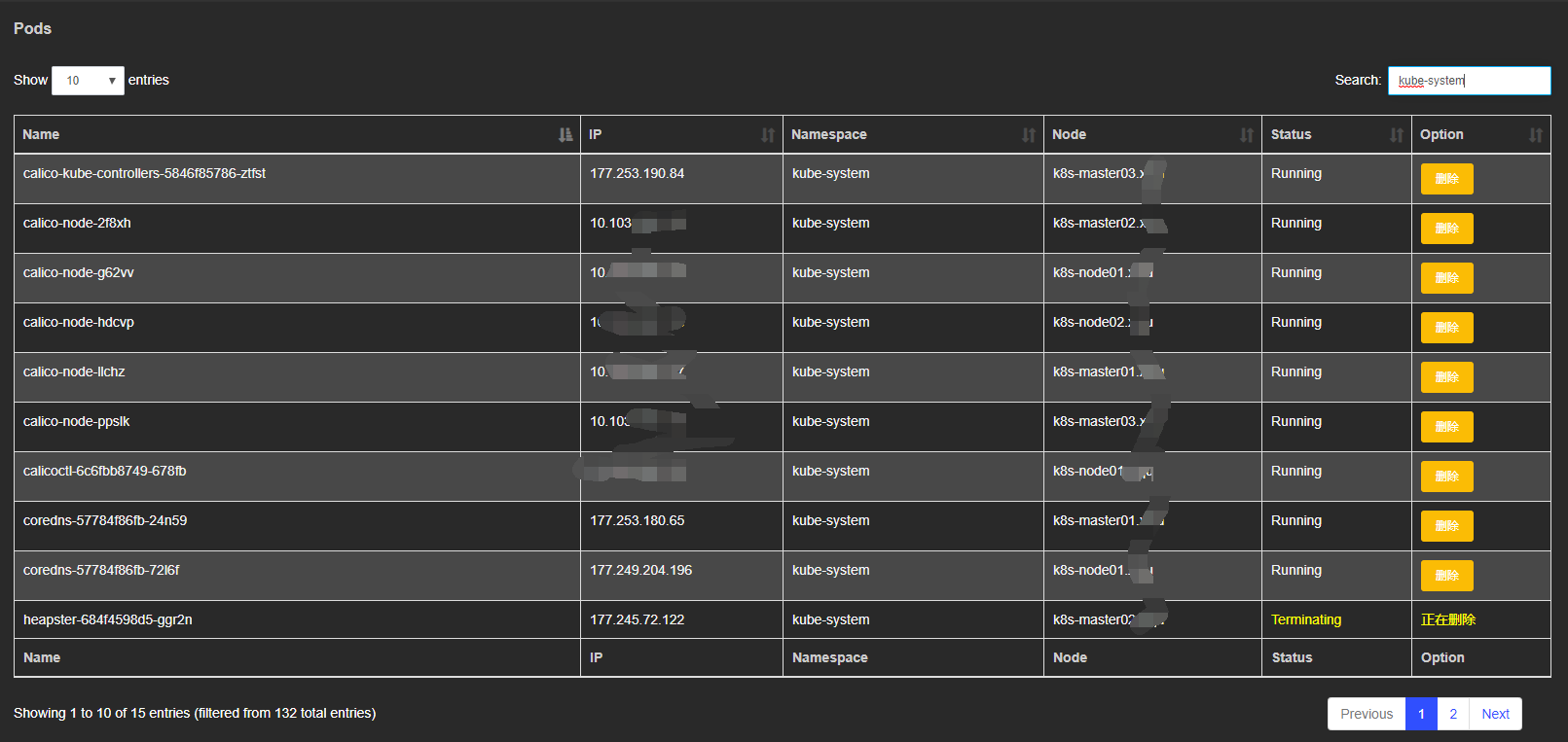 Pod列表,如果状态不是Running,可以将鼠标放在状态上即可查看出错原因