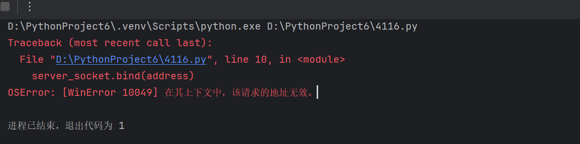 问题1:运行客户端时发现代码一直报错,显示积极拒绝、地址无效和超时等字样。