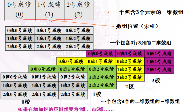 数组依照其维度结构进行分类。看一下这张图,为方便我们赋值,所有的编号都是从0开始,和索引相同。