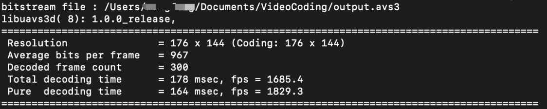 1 ./uavs3dec -i ~/Document/VideoCoding/output.avs3 -o ~/Document/VideoCoding/test.yuv