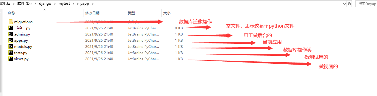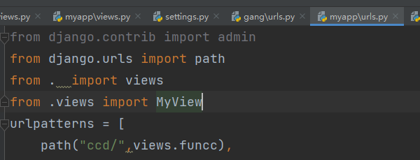 因为总路由在wang.urls下面,我们的views在myapp项目下面,不能直接通过总路由跳转过去,所以,我们要在项目下面添加一个子路由,具体方式如下