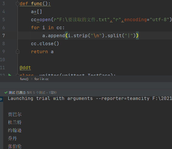#这里必须要加上.split("|"),不加上的话解析包解析出来就是 贾巴尔 杜兰特 约翰逊 乔丹 张伯伦,data无法识别,运行后会报add_test() argument after ** must be a mapping, not str的错误