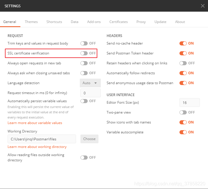 关闭Postman 证书的验证