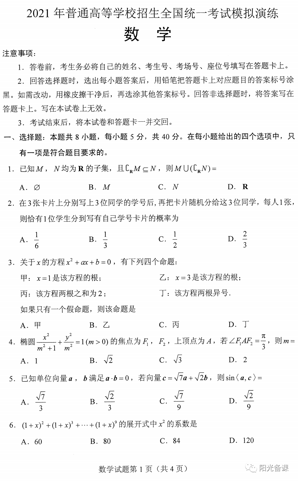 新高考|八省联考模拟演练数学卷