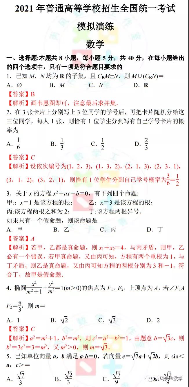总体来说,八省联考卷体现了新高考的特色,注重基础的同时考查能力,包括逻辑推理能力,应用分析能力,数学建模能力,计算能力等等。