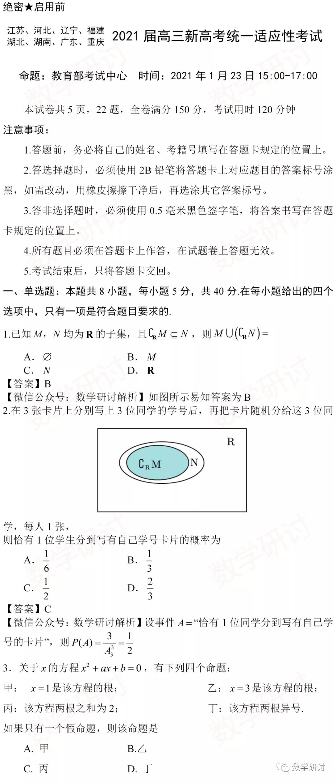 新高考|八省联考模拟演练数学卷,八省联考指的是江苏、重庆、湖北、湖南、广东、福建、辽宁、河北等省市同时进行新高考适应性考试。
