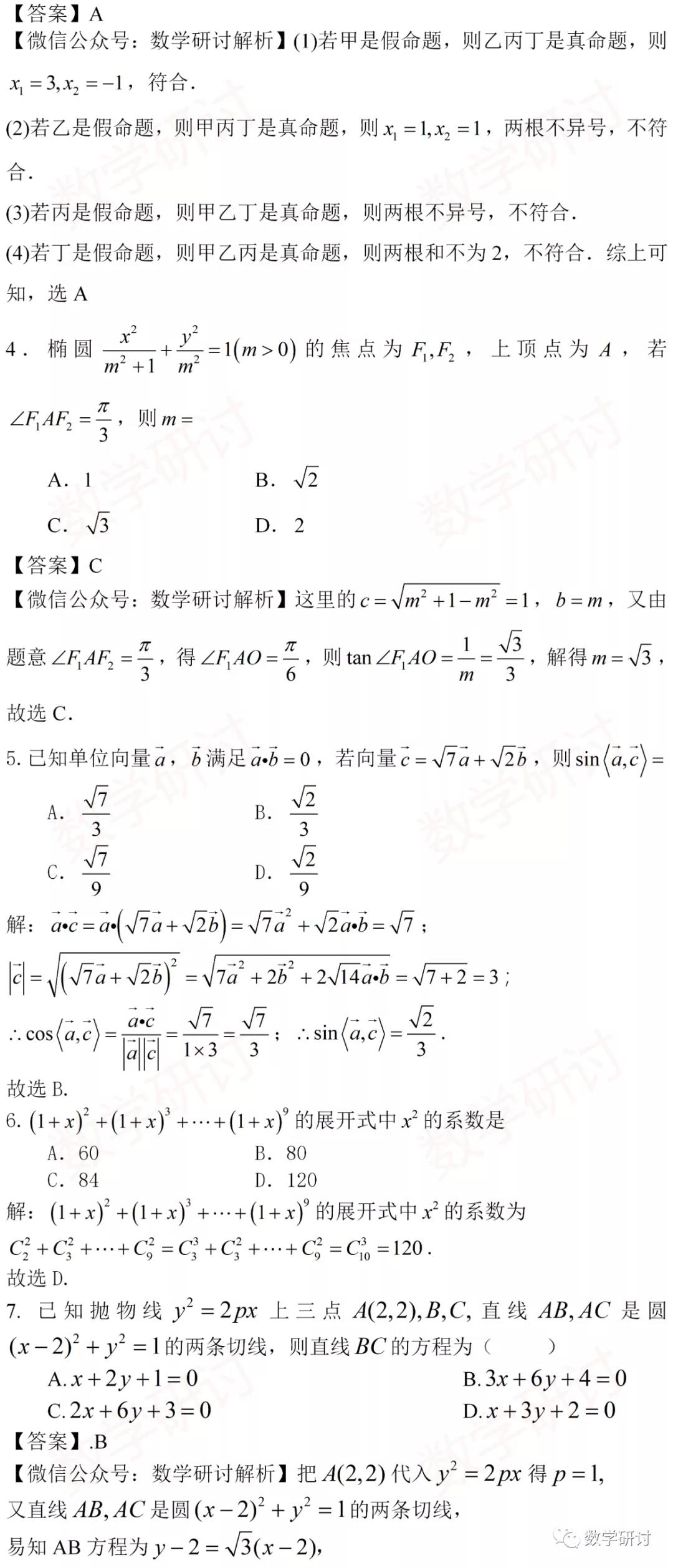 1、集合、命题、向量、复数、二项式定理、概率等依旧是基础题,基础题覆盖全面,难度并未太大变化,但考查方式有所变化。如二项式定理并未像以往一样考查单个展开式的特定项,而是给出一串和再求特定项。事实上,这并非有多大新意,教材上有类似的题,只不过全国卷涉及得少,也就忽略了。教材的重要性,你懂的。又如,复数也并未像以往那样单纯考查代数运算,而是对模与共轭复数进行了挖掘,充分体现代数与几何的紧密联系。从新教材布局上看,未来复数的考查会更加灵活多变。
