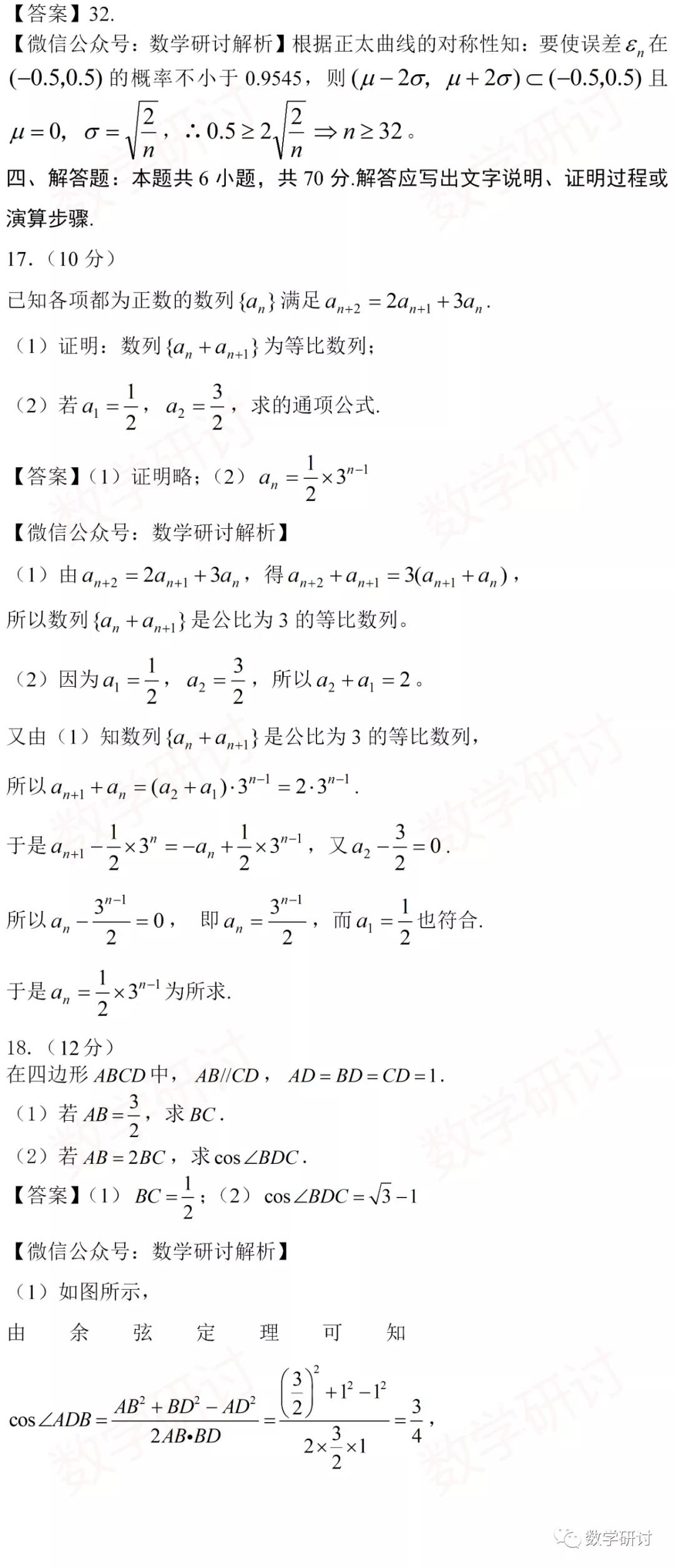 3、数列延续以往特色,并未与概率或导数结合考压轴题,但似乎也难倒了不少小伙伴,可见只记住一些固定套路是应付不了新高考的。