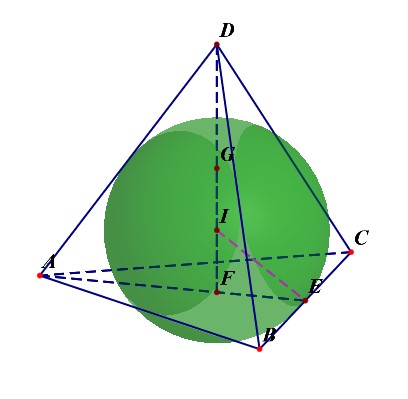 - 正四面体的内切球半径\(R_{内}=\cfrac{\sqrt{6}a}{12}=\cfrac{1}{4}h=IF\);