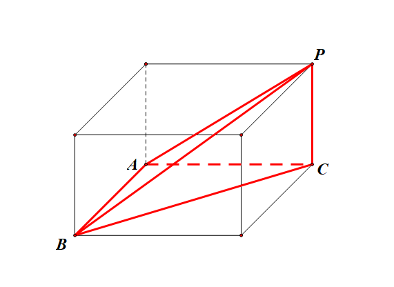 法2:补体为长方体;由于注意到题目中有好几个直角,如 \(\angle BAC\)、\(\angle BAC\)、\(\angle PCA\)、\(\angle PCB\),所以能联系到补体为长方体;