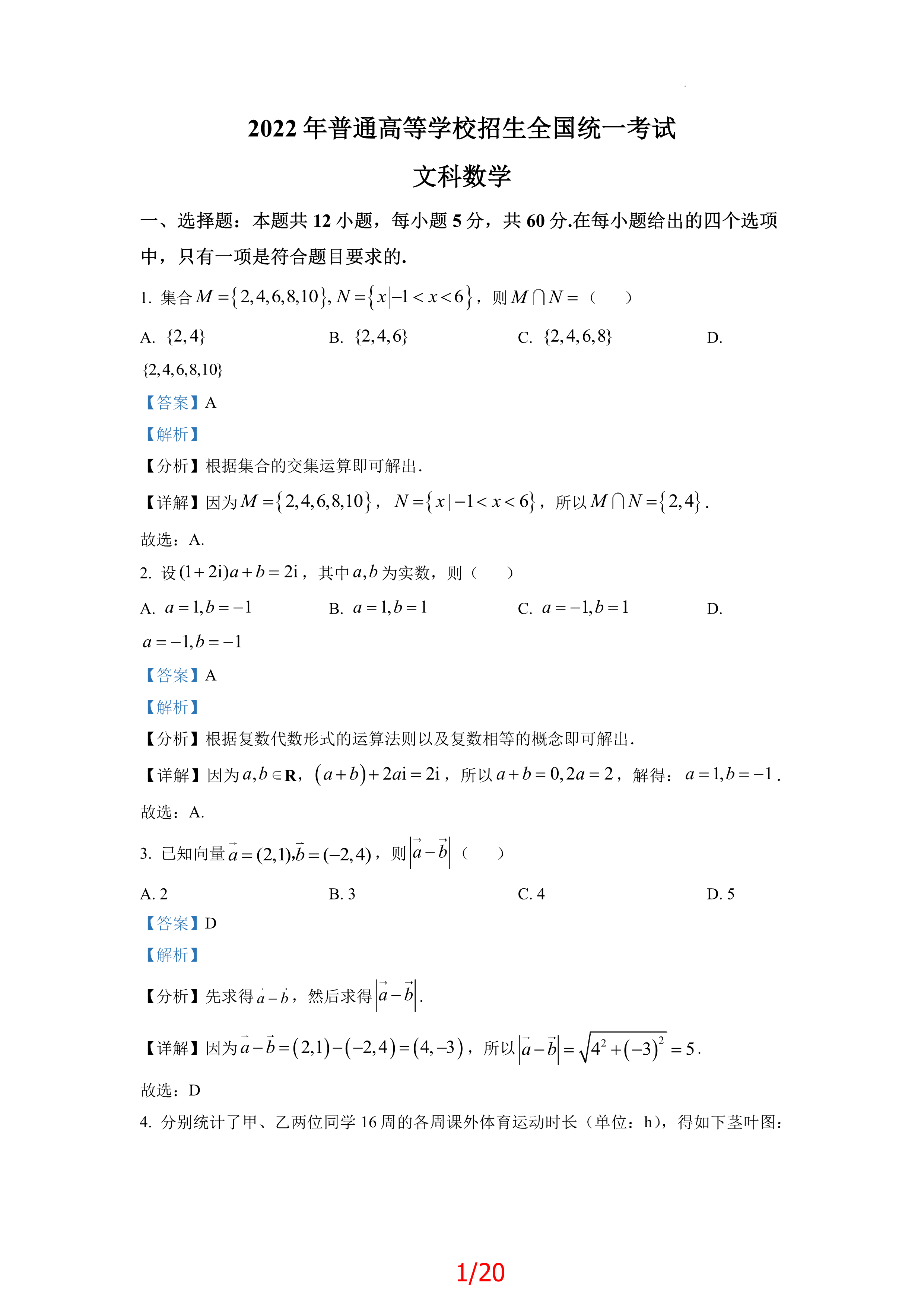 2022全国卷乙卷文科数学解析版|图片