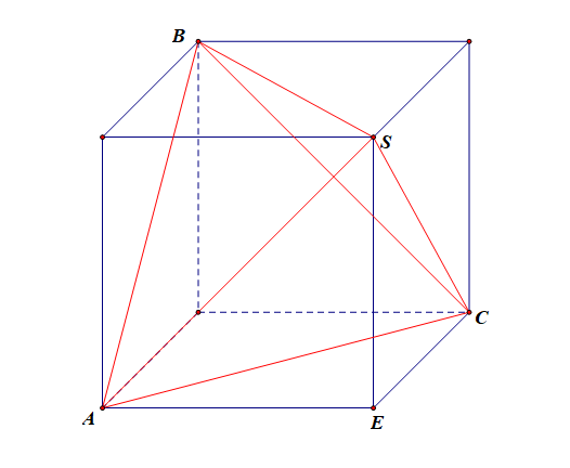 法2:做出正四面体,如图所示,\(E\) 为点 \(S\) 在下底面的垂足且为 \(\triangle ABC\) 的重心,由于 \(AB=2\),则 \(BF=1\),\(AF=\sqrt{3}\),\(AE=\cfrac{2\sqrt{3}}{3}\),则 \(SE=\cfrac{2\sqrt{6}}{3}\),故外接球 \(O\) 的半径为 \(R\) \(=\) \(\cfrac{3}{4}\)\(\times\)\(\cfrac{2\sqrt{6}}{3}\) \(=\) \(\cfrac{\sqrt{6}}{2}\), 故 \(S_{表}\) \(=\)\(4\)\(\pi\)\(R^2\)\(=\)\(6\pi\),故选 \(D\) .