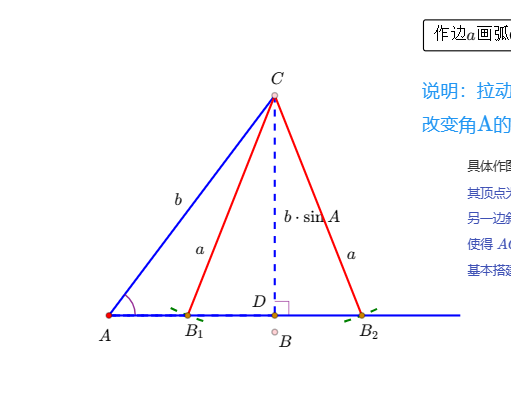 在\(\Delta ABC\)中,已知\(a,b,A\),三角形的解的个数这种情形比较复杂,见下表的动画演示: