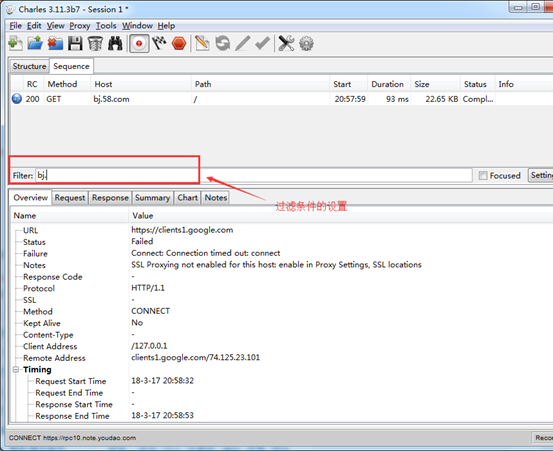 如果感觉请求太多,可以切换到Sequence窗口设置过滤条件进行查看必要的请求,如下图: