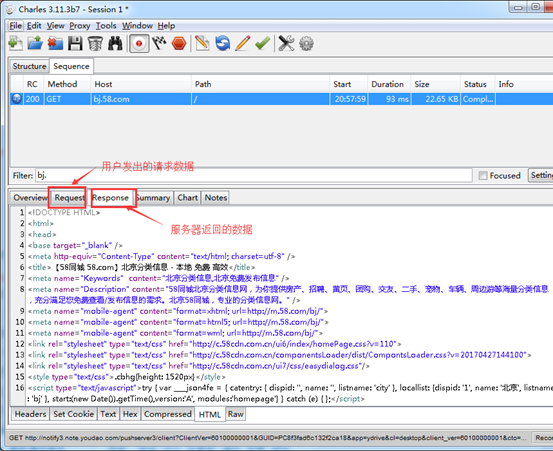 选中筛选出来的请求,然后选择相应的Request、Response选项,对该请求进行分析,如下图: