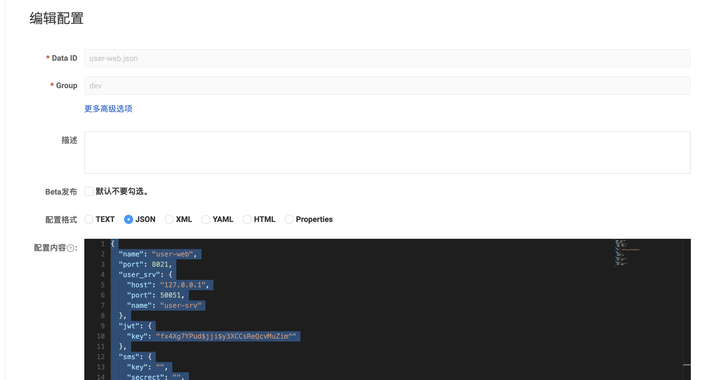 user-web/config/config.go文件添加json:"xxx"以供json解析使用
