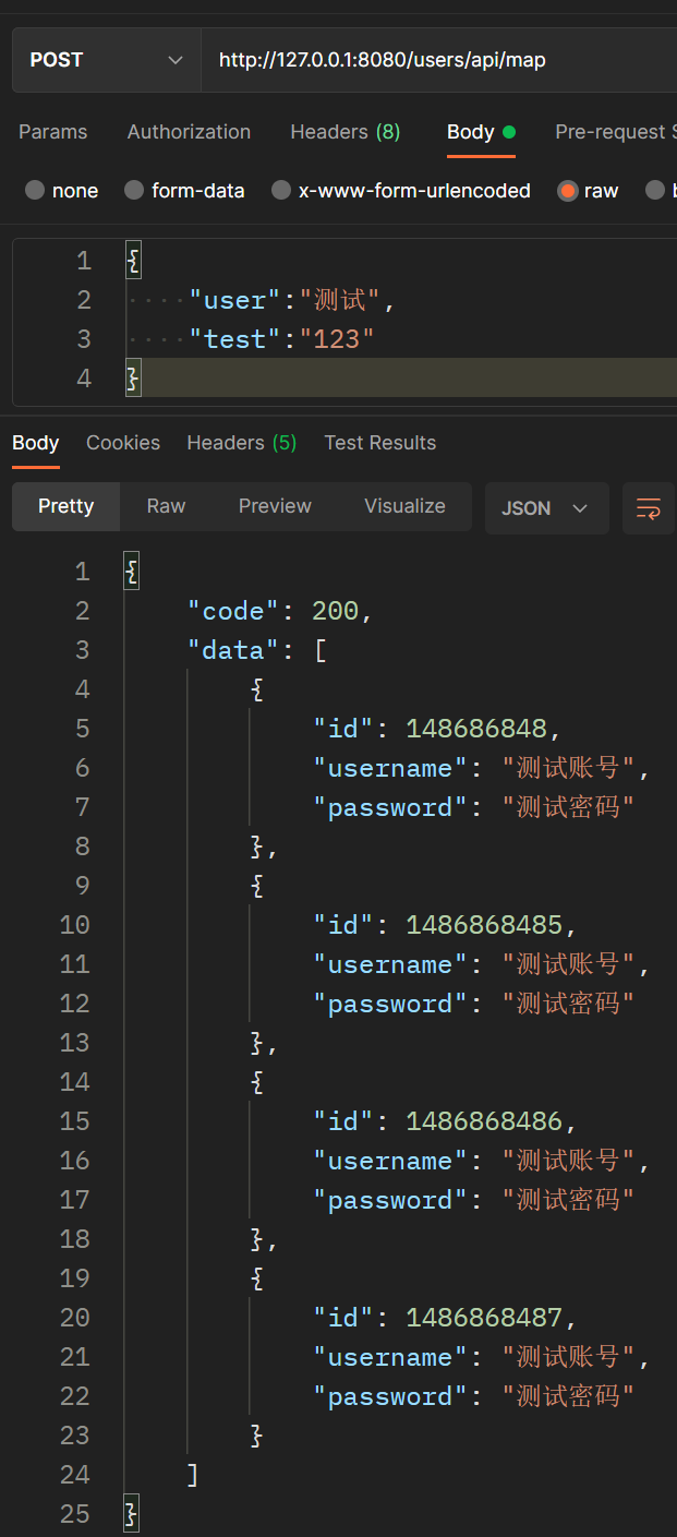 System.out.println("test :" + map.get("test")); // 自定义接收KEY