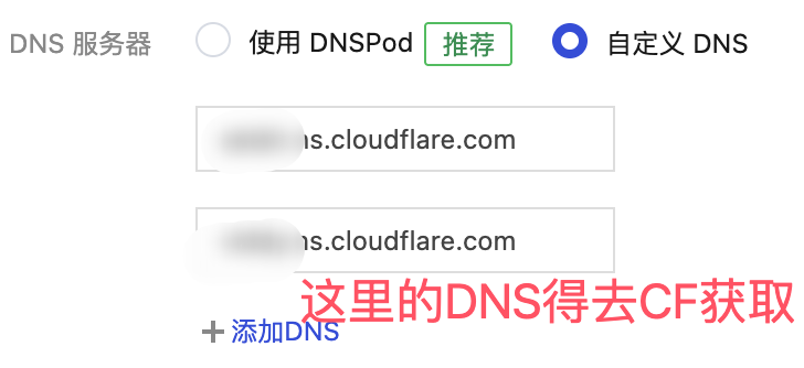 2、把当前代理商的DNS 修改成CF的DNS地址(腾讯云 - 域名 - 数据预览 - 修改DNS服务器 - 自定义DNS - 修改保存)