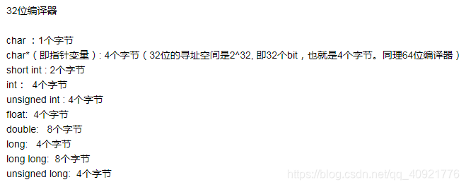 Windows NT 32位平台下,指针的长度(占用内存的大小)为4字节,故sizeof( str ) 、sizeof ( p ) 都为4。