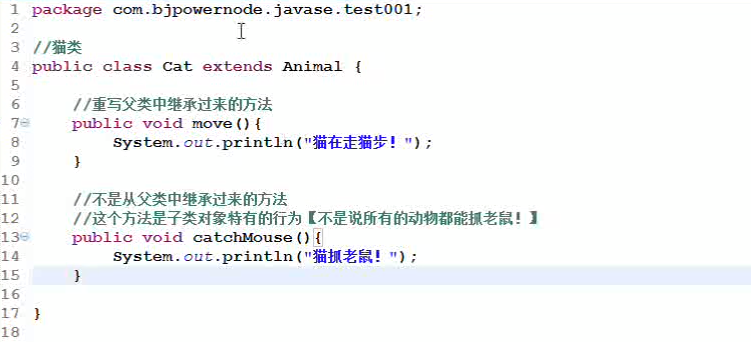 【第5点,Cat类继承了Animal类的方法,所以即便没有重写,也可以调用从Animal继承来的move()方法】