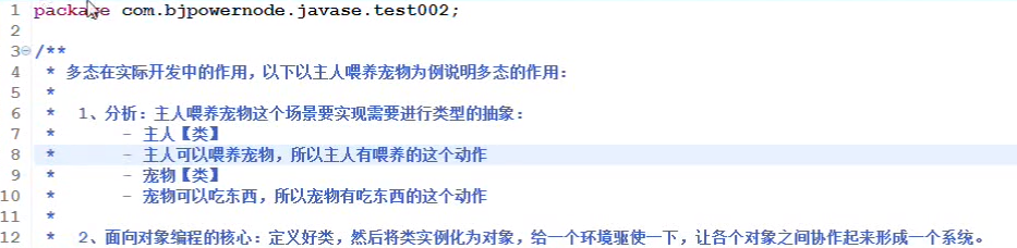 【个人理解:以主人、宠物、猫、狗为例,子类猫和狗继承于父类宠物,猫和狗的吃鱼和啃骨头是基于父类宠物的多态(多样性),并且多态以方法覆盖(个性化)实现】