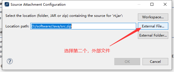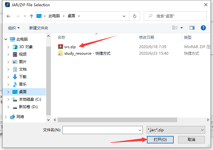 在弹出窗口中,找到src.zip文件所在位置,确定