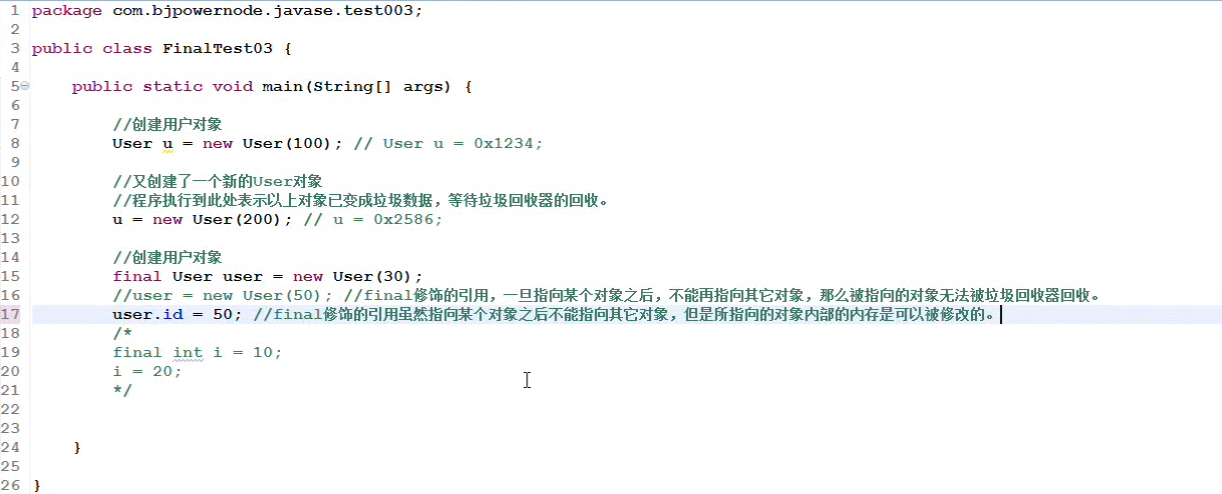部分格式:public final ....,final int i ... ; ,final User u = new User(); ...