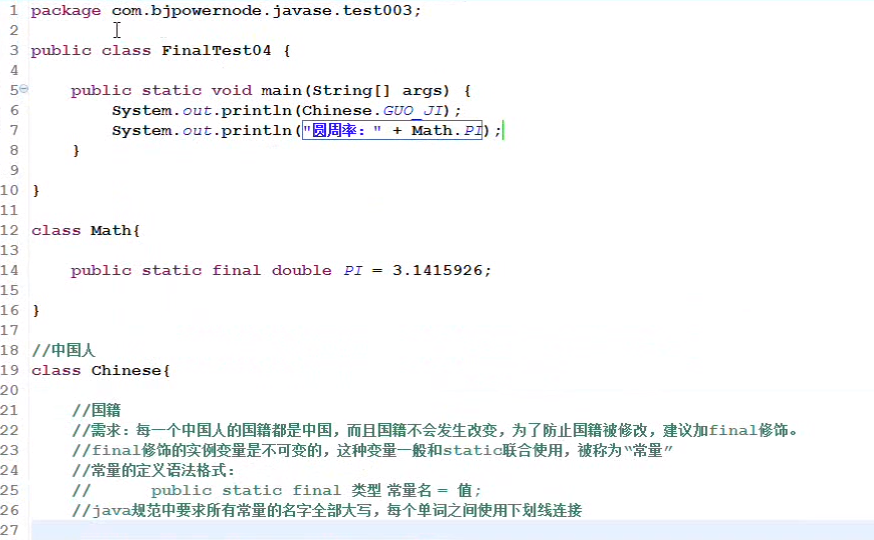 【final定义常量:public static final 类型 常量名 = 值】