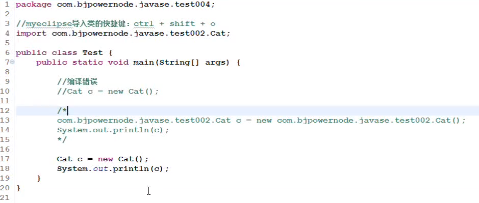 PS:在MyEclipse中,import和package,操作简便