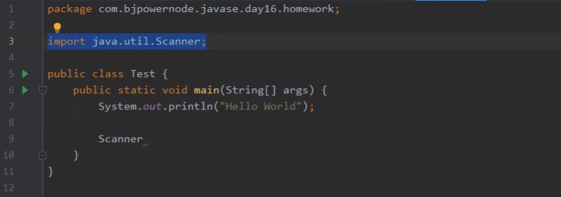 比如,下面调用Scanner,import会自动生成,不需要手动写