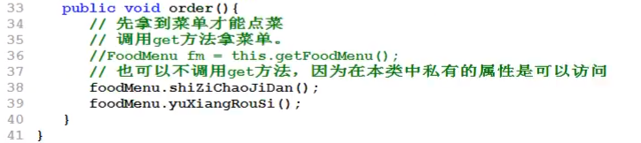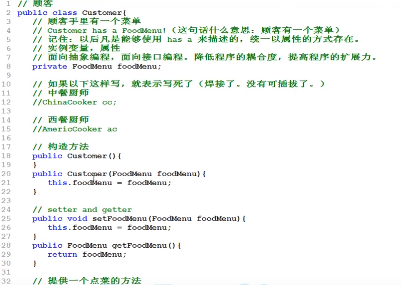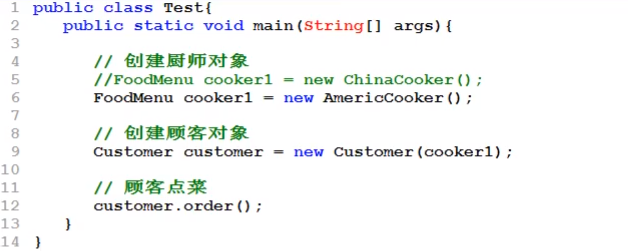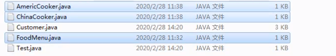 【Customer只调用菜单,不关心厨师,去掉两类厨师和Test可以编译通过】